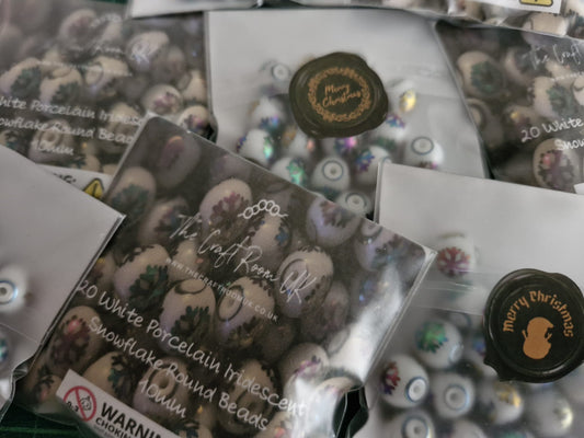 White Porcelain Iridescent Snowflake Christmas Beads