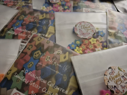 Rainbow Coloured Smiley Star Polymer Clay Beads