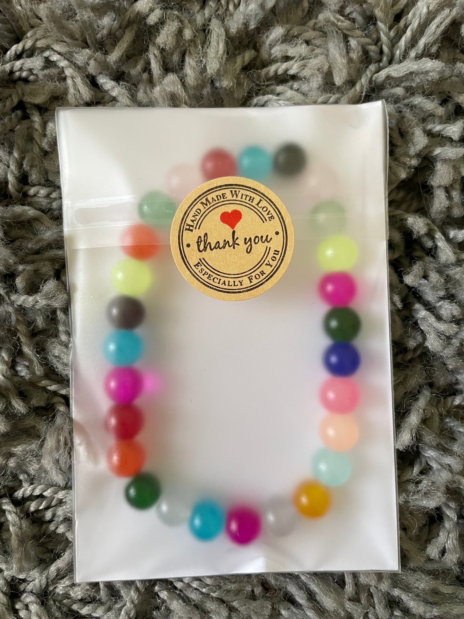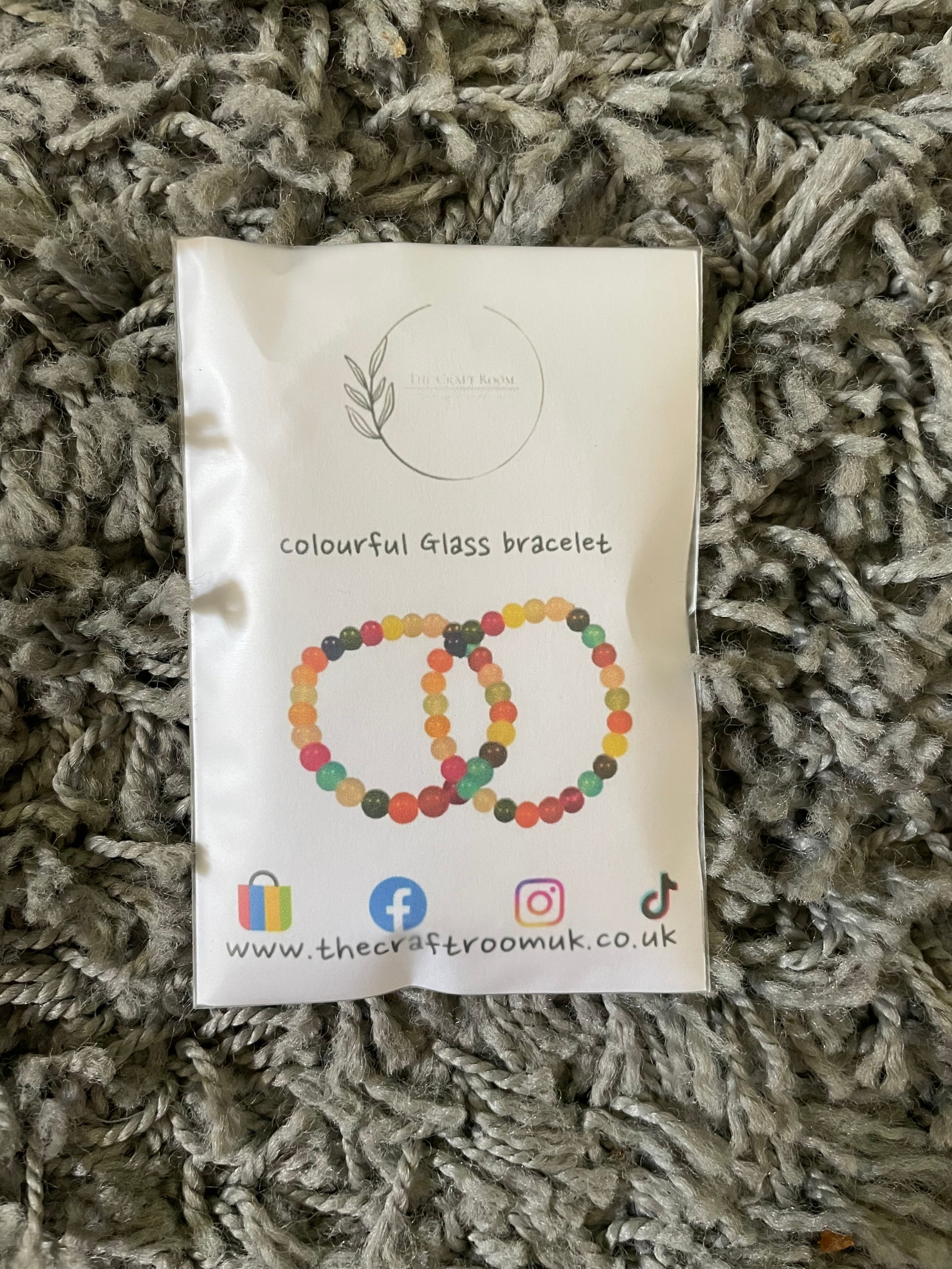 This elegant bracelet features a handmade design and is adorned with vibrant, colourful glass beads. Each bracelet is unique and stylish, making it the perfect accessory to add a pop of colour to any outfit. Handcrafted with care, this bracelet is a must-have for any fashion-forward individual.