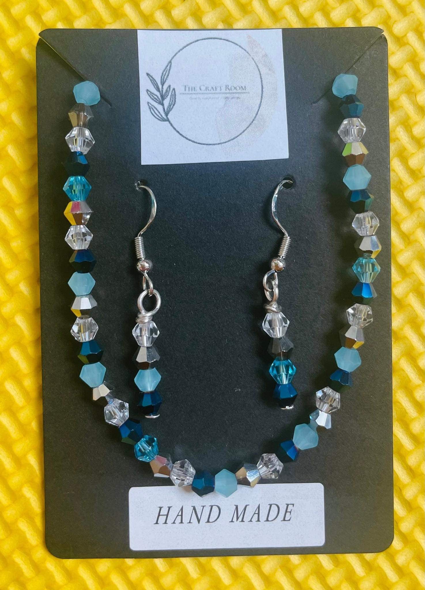 This elegant blue necklace and earrings set is a perfect addition to any outfit. The vibrant blue colour adds a touch of sophistication and complements any skin tone. Crafted with high-quality materials, this set is durable and long-lasting. Elevate your style with this stunning set.