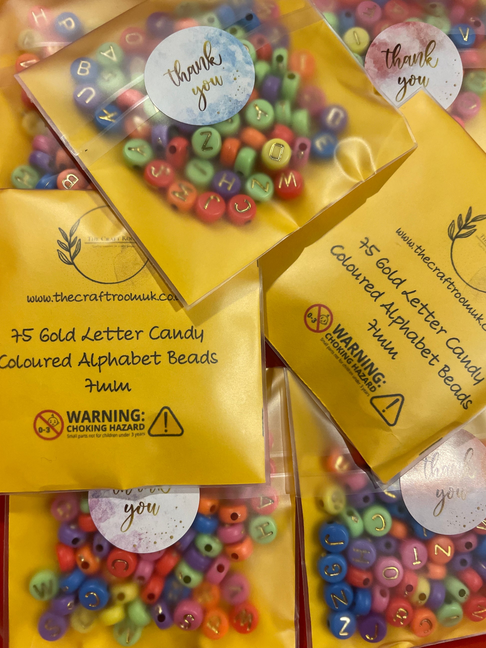 These 7mm gold letter alphabet beads come in a variety of bright candy colours. These metallic letters add a touch of class and personalisation to any craft or jewellery project. Expertly crafted with a professional tone, these beads are sure to make a statement.