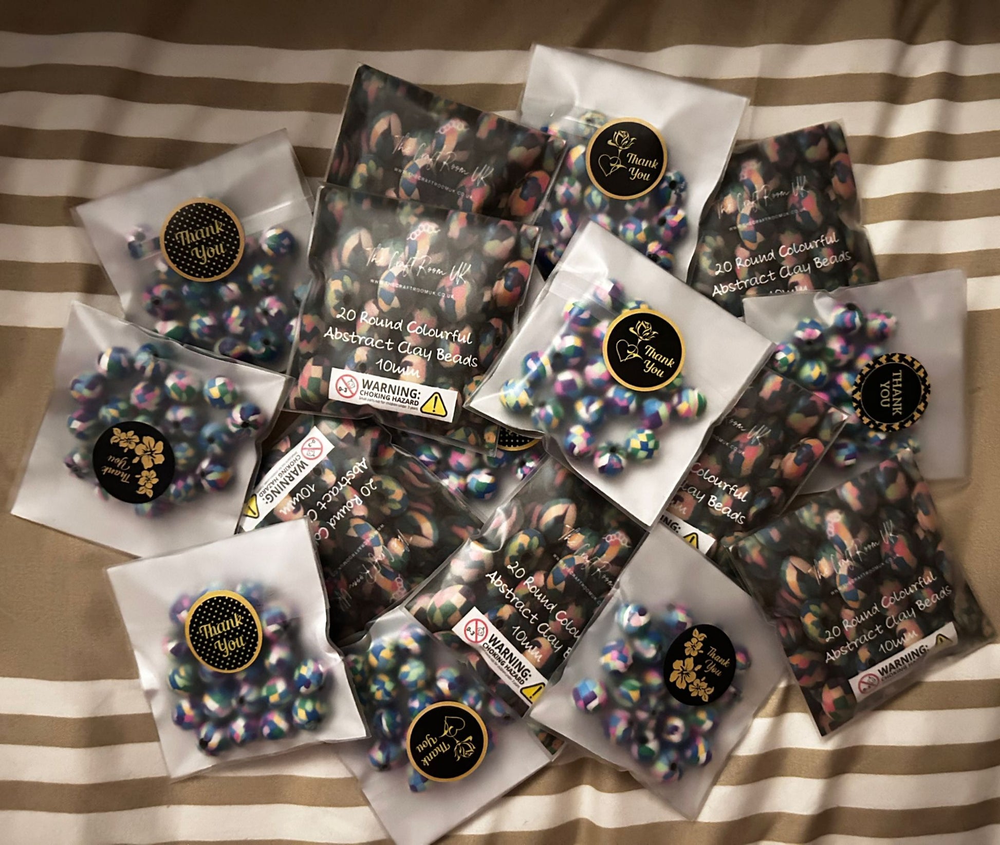 Get ready to add some colour and whimsy to your jewellery collection with these Round Colourful Abstract Polymer Clay Beads. Each 10mm bead is uniquely designed with abstract patterns, making them stand out from the ordinary. These round beads are perfect for adding a playful touch to any DIY necklace or bracelet.