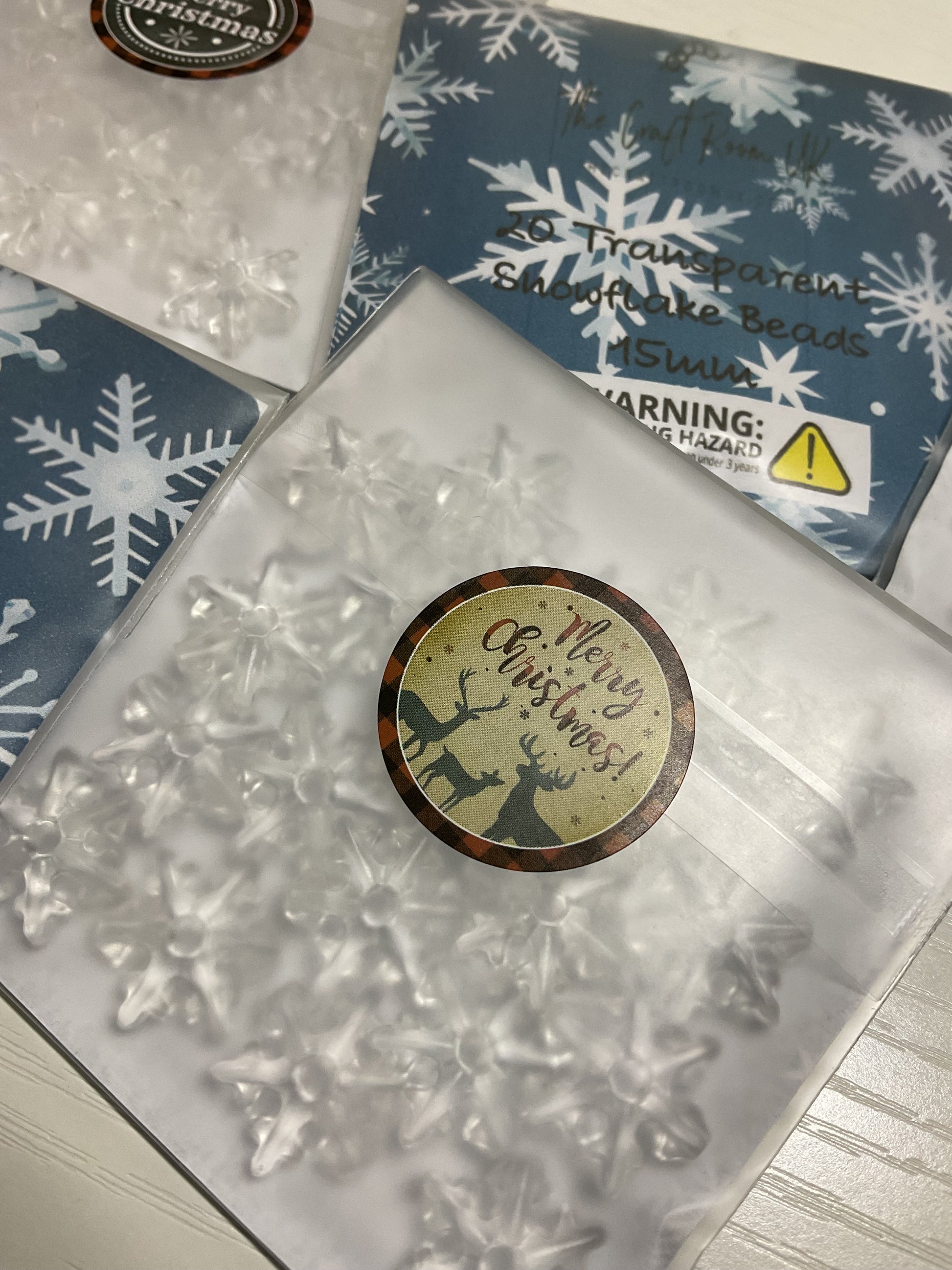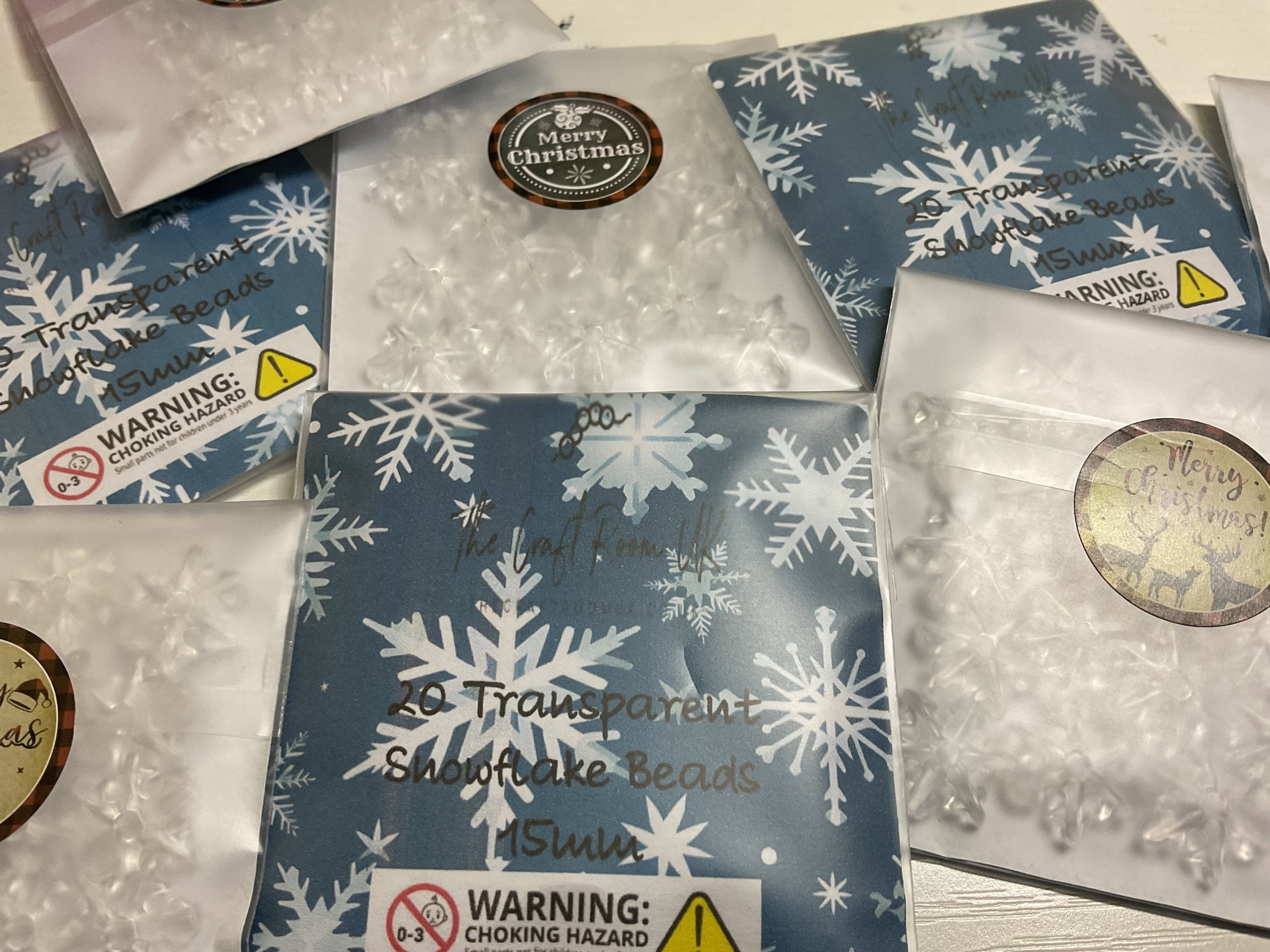 Expertly crafted for Christmas, these Transparent Snowflake Beads add a delicate touch to any holiday project. With 20 per pack, these snowflake shaped beads are perfect for creating stunning winter-inspired designs. Elevate your holiday crafts with these elegant and versatile beads.