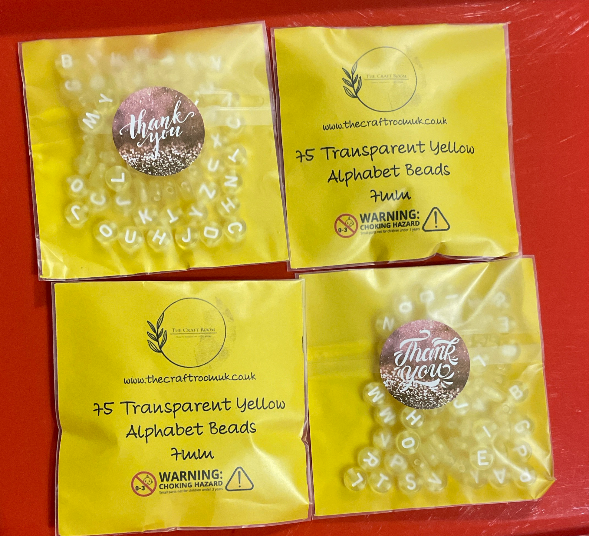 These 7mm transparent yellow alphabet beads are perfect for creating personalised jewellery pieces. The transparent colour adds a unique touch to any design, while the alphabet letters allow for endless customisation options. Use your creativity to create beautiful and meaningful accessories with these alphabet beads.